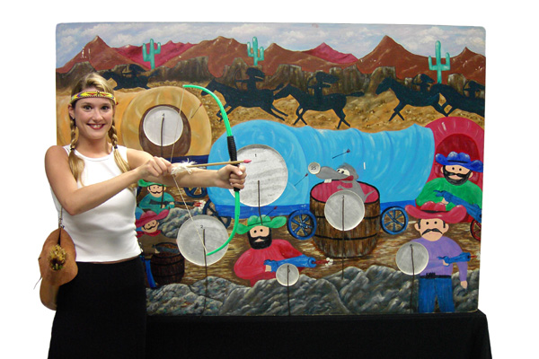 An Oklahoma favorite. We have designed and built each of these games to be fun for all age groups and skill levels. As with the casino style games they are designed to fit an approximate 10'X10' space. A lot of our clients will add one or two of these to a Vegas Night for a great casual atmosphere where guests can still get dressed up. These are games of skill, most of which are one of a kind, so your guests won't have much of leg on their competition when the party starts. Prizes can be awarded based on many different scenarios. Carnival style, after each play. Team score, or individual effort by points totaled at the end of the session. Please phone us for a better description if you see something you like, and don't forget Polaroids for your guests to remember your event. |