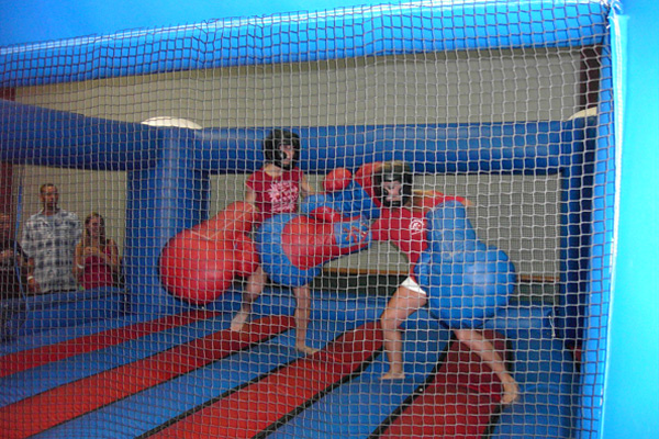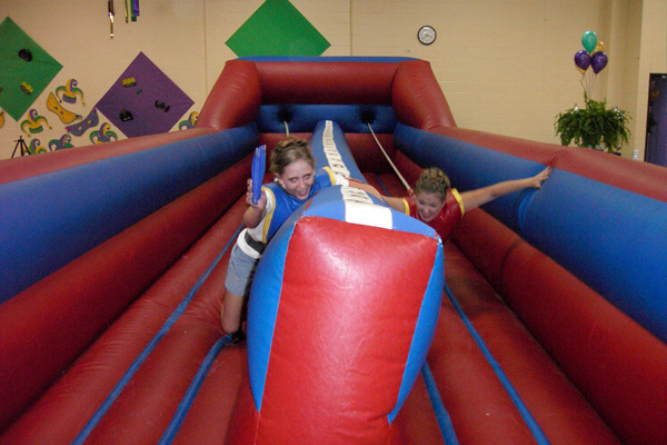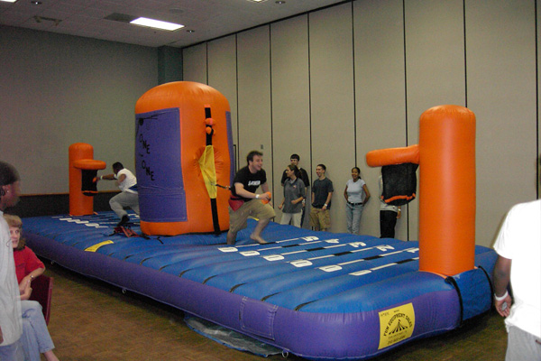 Inflatable games are great attention getters. They're big, bright, and colorful. Remember, we do staffed events, we make sure your games are clean, safe, dependable, and fun for all of your guests. Many of these games are difficult to operate properly. However, if you'd like just a rental let us know. We work with these companies all the time and would be happy to recommend someone reputable in your area. Our staffed inflatable games are priced on a per hour basis. Please phone us for current price and availability. |